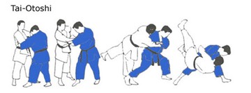 The use of the Tsurite (Lifting hand) is of particular importance in this Waza. Tori Tsurite (Lifting hand) grasps Uke lapel area, and then lifts Uke with elbow extended outward. As the lift is applied, Uke heels lift off the floor, making him easier to pull. Although the Tai-otoshi (Body drop) is frequently used in both men’s and women's competition, it is also known as a Choshi-waza (Timing technique) where light-footed motion is critical, and is therefore most often seen in contests between two small-statured combatants.